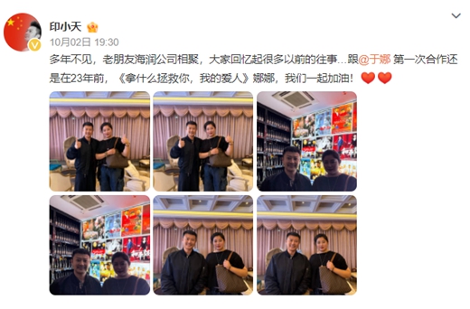 合影中,两人并肩而立,笑容温暖。印小天配文:“多年不见,老朋友海润公司相聚,大家回忆起很多以前的往事…跟@于娜 第一次合作还是在23年前,《拿什么拯救你,我的爱人》娜娜,我们一起加油!”此动态一经发布,瞬间勾起无数观众的青春记忆。2002年,两人因海岩剧《拿什么拯救你,我的爱人》爆红,剧中印小天饰演的律师“韩丁”与于娜饰演的富家女“罗晶晶”爱而不得,成为一代人心中的“意难平CP”。