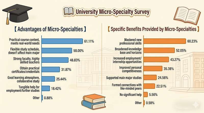 Amid efforts to align higher education with labor market needs, China’s Ministry of Education launched the “Double Thousand Plan” in 2025 to promote micro-majors. A recent survey shows that these programs are now widely available and well received among students. Many students choose micro-majors because they offer practical training and clear links to industry, and see them as a way to build skills, explore interests, and expand career options. Meanwhile, students expect further improvements in course depth, teaching quality, and scheduling as micro-majors continue to develop.