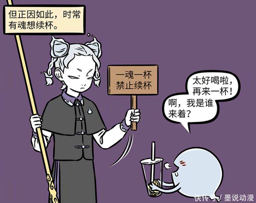 《非人哉》第1150话更新,这一话中新角色孟婆登场。她掌管醧(yu)忘台,主要是给诸魂饮下孟婆汤。随着时代发展,孟婆汤甚至可以定制,可以根据喜好来变化。另外牛头马面在这一话中也出现,跟随孟婆一起处理魂魄。