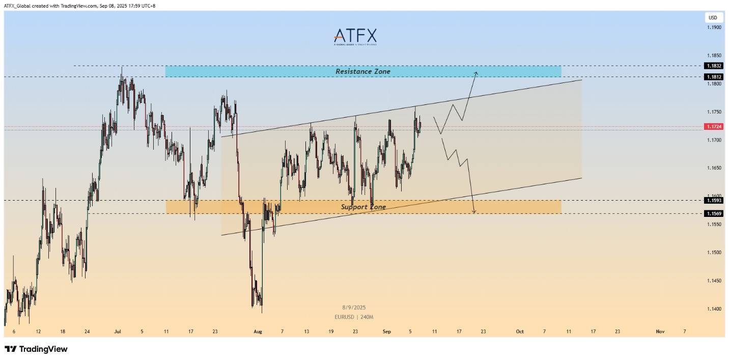 目前的市场共识是,欧洲央行将在9月维持其政策立场,路透社的一项调查证实了这一点,69位经济学家中有66位预计9月11日的会议不会改变,将存款利率维持在2.00%。这反映出一种观点,即稳定的通胀和低失业率降低了进一步降息的必要性。
